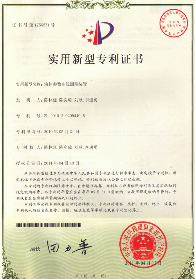 液體參數(shù)在線測量裝置(單電極測量裝置),